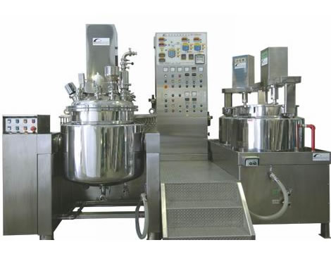 乳化鍋乳化過程是在全密封條件下進行的,鍋內(nèi)物料通過下均質(zhì)機的高速內(nèi)循環(huán)剪切混合乳化,上刮板攪拌器在運轉(zhuǎn)時產(chǎn)生離心作用,使四氟刮板緊貼鍋壁,有效的解決了鍋壁沾料問題,有效防止了灰塵和微生物的污染,乳化后的產(chǎn)品光亮細膩,顆粒直徑小可達3~5μm。